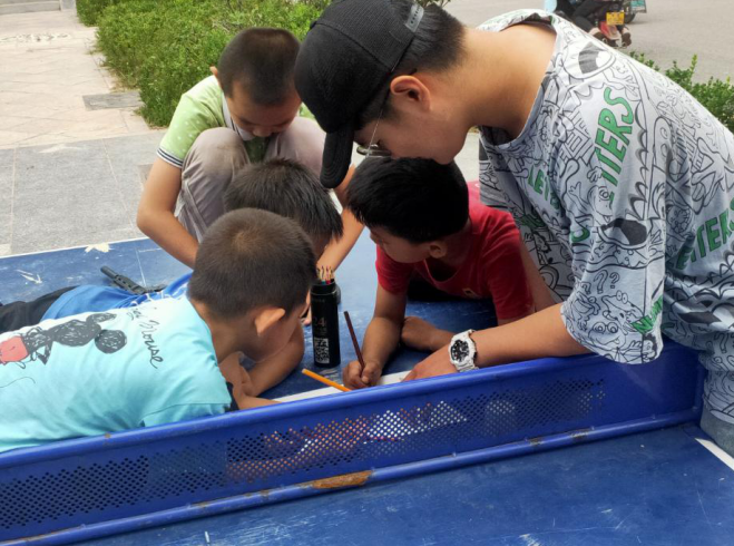 为帮助乡村留守儿童开拓视野和发展技能,8月22日-8月24日,“绘声绘色”志愿服务队分小组前往黄山、山西等多地的村镇,相继开设了为期3天的美术小课堂,志愿者们为孩子们带去画纸、水彩笔、素描铅笔等绘画用具,从最简单的基础素描入手,耐心讲解,悉心辅导,孩子们更是用自己最满意的作品回报老师,以最淳朴的微笑留给志愿者们满足与感动。