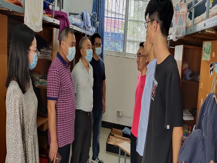 9月4日、7日下午,数学与统计学院党总支书记方继光、院长汪宏健及专职辅导员陈伟龙、袁晨晨深入2018级、2019级返校学生宿舍,了解学生返校后的生活情况。