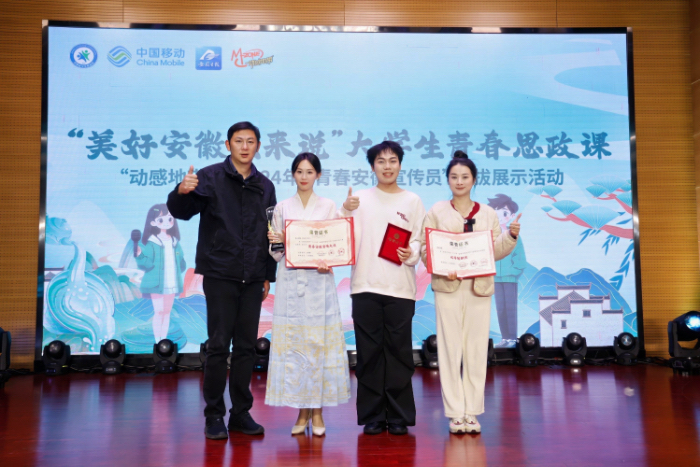 11月28日,由共青团安徽省委、安徽省学联、安徽日报主办、安徽报业融媒网络运营有限公司承办,中国移动安徽公司协办的“动感地带杯”2024年“青春安徽宣传员”选拔赛决赛在中国科学技术大学落下帷幕。我校获优秀组织奖,文化与传播学院2022级播音与主持艺术专业万科含、2023级播音与主持艺术专业艾唐峻两名选手分别荣获“青春安徽宣传大使”“青春安徽宣传员”称号。