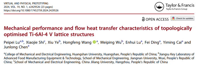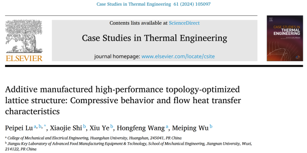 我校陆佩佩博士、汪洪峰教授与江南大学武美萍教授合作,在工程技术领域权威期刊《Virtual and Physical Prototyping》(中科院1区,IF=10.2)和《Case Studies in Thermal Engineering》(中科院2区,Top期刊,IF=6.4)分别发表题为“Mechanical performance and flow heat transfer characteristics of topologically optimised Ti-6Al-4 V lattice structures”和“Additive manufactured high-performance topology-optimized lattice structure: Compressive behavior and flow heat transfer characteristics”的科研论文,论文第一署名单位为博业体育(中国)官方网站-登录入口,陆佩佩博士为论文第一作者。