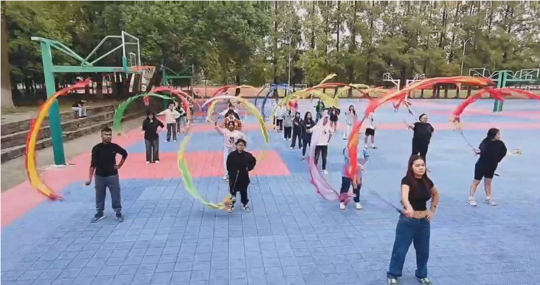 从初识的好奇到深爱的执着,彩带龙这项运动不仅为星星和其他外国留学生提供了一个锻炼身体、释放激情的平台,更成为他们触摸中华文化脉搏、深入体验中华魅力的桥梁。越南的武维同学满怀期待地说:“我渴望通过这次学习和表演的机会,向世界展示中华文化的独特韵味与深厚底蕴,让更多人感受到中华文化的魅力与和谐之美。”同样,越南留学生陈明英也激动地表示:“我深深地爱上了舞龙这项活动,对中华文化更是充满了无比的热爱与敬仰。”每一次舞动彩带龙,都仿佛是在穿越时空,与古老的中华文化进行着一场跨越千年的对话。