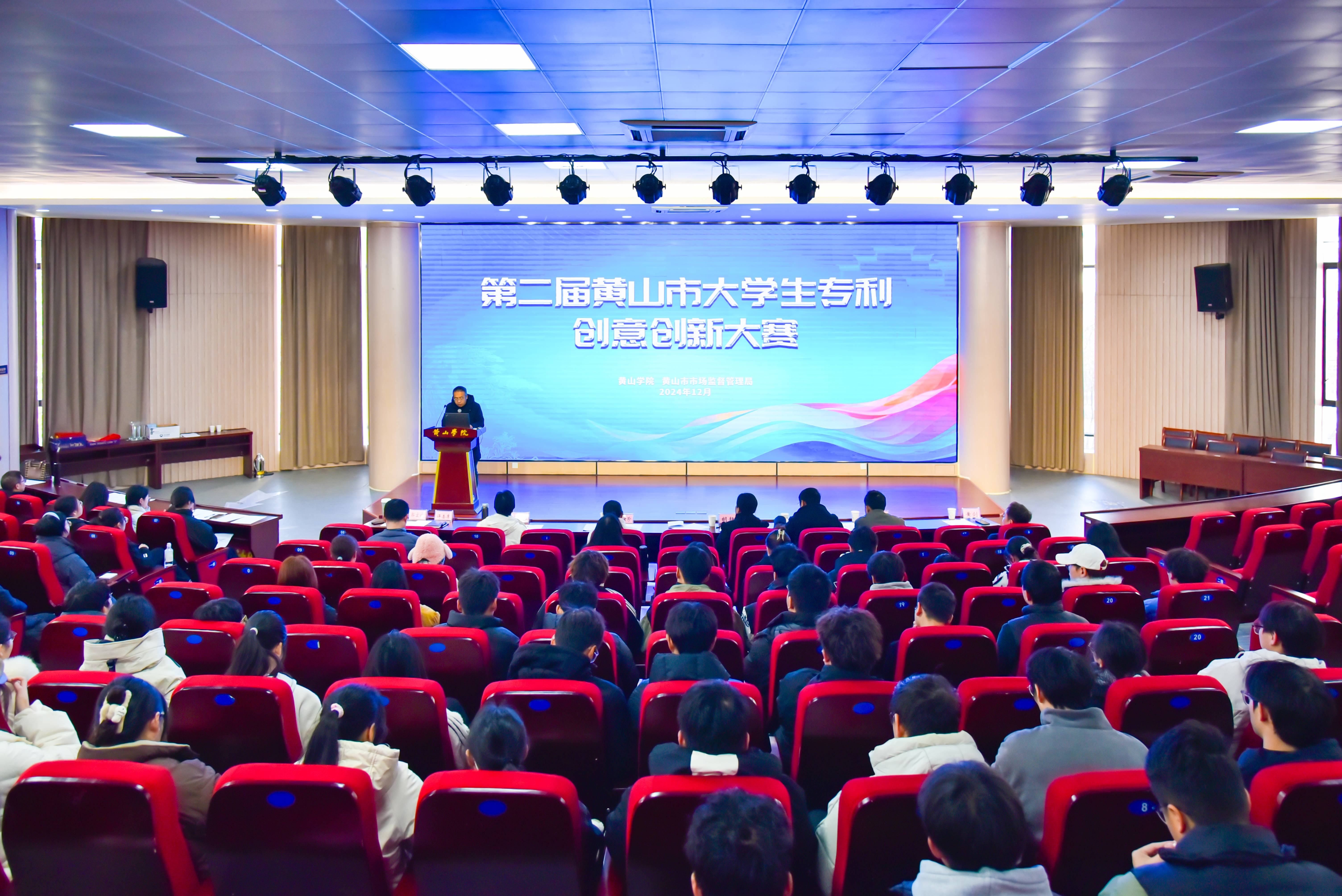 为鼓励创新,强化专利创造、保护和运用,引导大学生关注知识产权,营造更具青春活力、创意创新的社会氛围,12月20日上午,第二届黄山市大学生专利创意创新大赛在我校率水校区文端楼二楼报告厅举行。黄山市市场监督管理局副局长黄剑、胡静、相关学院教师及学生代表200余人参加了活动。大赛由科研处负责人主持。