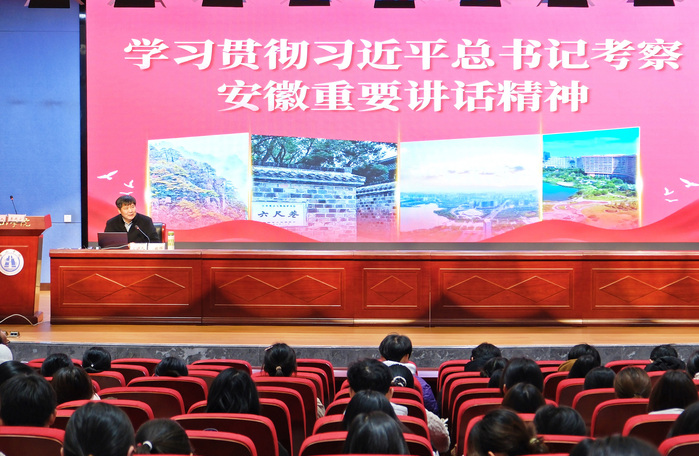 李庆宏在主持报告会时强调,学习好、宣传好、贯彻好习近平总书记考察安徽重要讲话精神,是当前和今后一个时期的重大政治任务。全校上下要以本次宣传报告会为契机,按照省委部署要求,紧密结学校实际,持续掀起学习宣传贯彻的热潮。要全面认识、深入理解、深刻把握习近平总书记考察安徽重要讲话精神,深思细悟、实干笃行,真正把学习成果转化为推动学校改革发展的强大动力,以时不我待、奋发有为的精神状态推动学校高质量发展。