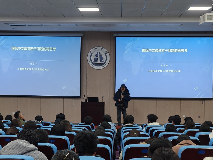 12月26日晚,华东师范大学胡范铸教授应邀为我校文学院师生作题为《国际中文教育的若干问题》的学术报告。报告会在文端楼二楼报告厅举行,文学院师生近200人参加活动,文学院有关负责人主持报告会。