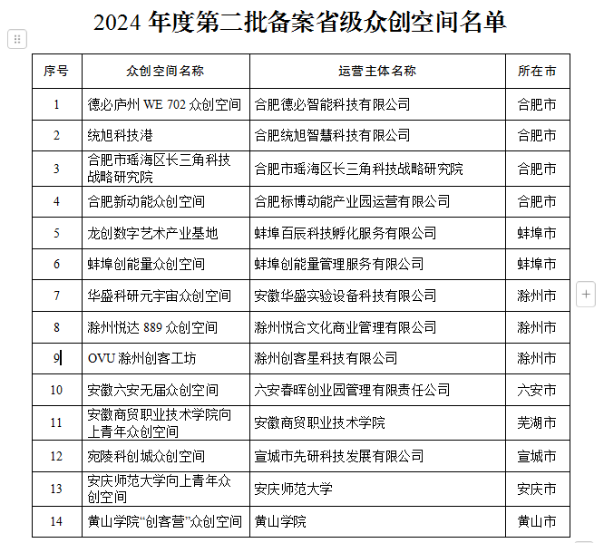12月24日,安徽省科技厅公布了《关于公布安徽省2024年度第二批认定(备案)省级科技企业孵化器和众创空间名单的通知》(皖科成果秘〔2024〕405号),博业体育(中国)官方网站-登录入口“创客营”众创空间经组织申报、黄山市科技局信用核查、评审、实地核查、公示,省科技厅复核和厅会议研究等环节,成功获批备案“2024年度安徽省众创空间”。