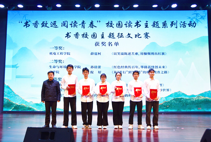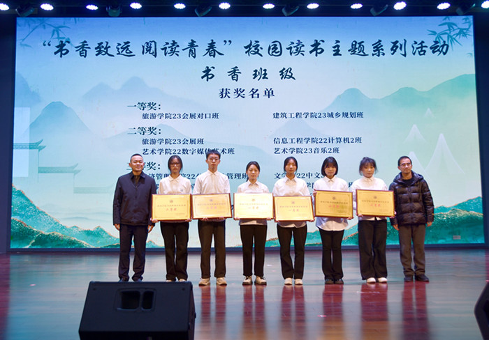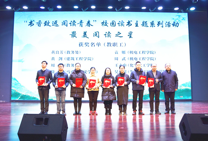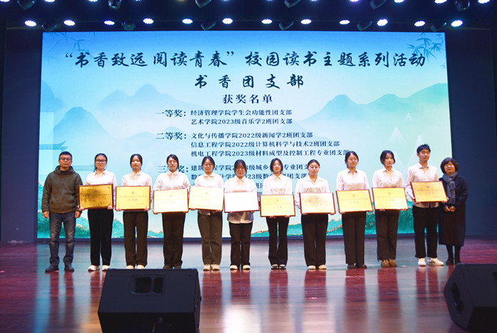会上表彰了书香寝室、书香班级、书香团支部、“青春共筑书香梦”短视频征集大赛、书香校园主题征文比赛、书香校园志愿服务评比活动、第七届优秀课堂笔记获得者,与会部门领导为获奖者颁奖。