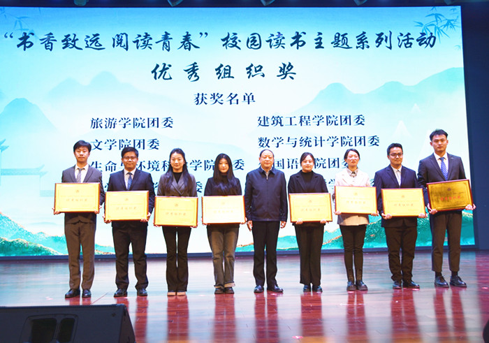 张小明宣读了表彰决定,旅游学院团委等八个学院团委获评“优秀组织奖”,何广龙等十位教师,刘念稀等十位学生荣获“最美阅读之星”称号。