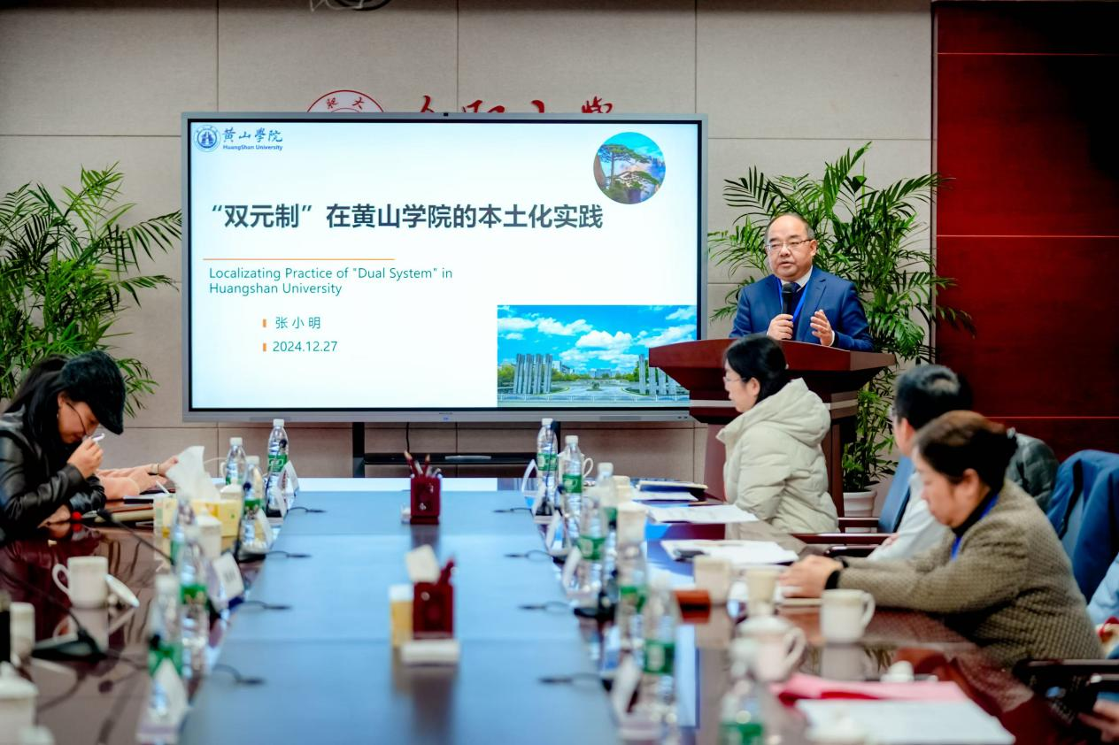 会上,张小明作题为《“双元制”在博业体育(中国)官方网站-登录入口的本土化实践》的主旨报告,从四个方面详细分享了学校结合“双元制”教育理念,探索服务地方经济社会发展、培养高水平应用型人才的实践与成果。一是紧接地方产业,搭建应用型人才培养平台;二是“国际项目、国际赛事、国际实习、国际服务”四轮驱动,培养本土化实践创新人才;三是产教融合、校企合作,夯实应用型人才实践教学体系;四是文化铸魂,增强学生投身地方实践产业的内驱力。张小明表示,未来学校将持续推进双元教育、产教融合,全面提升应用型人才培养质量,努力打造成为“国内一流、国际知名”的应用型人才培养高地,为长三角一体化发展和中国高校教育改革贡献更多的“黄山经验”。