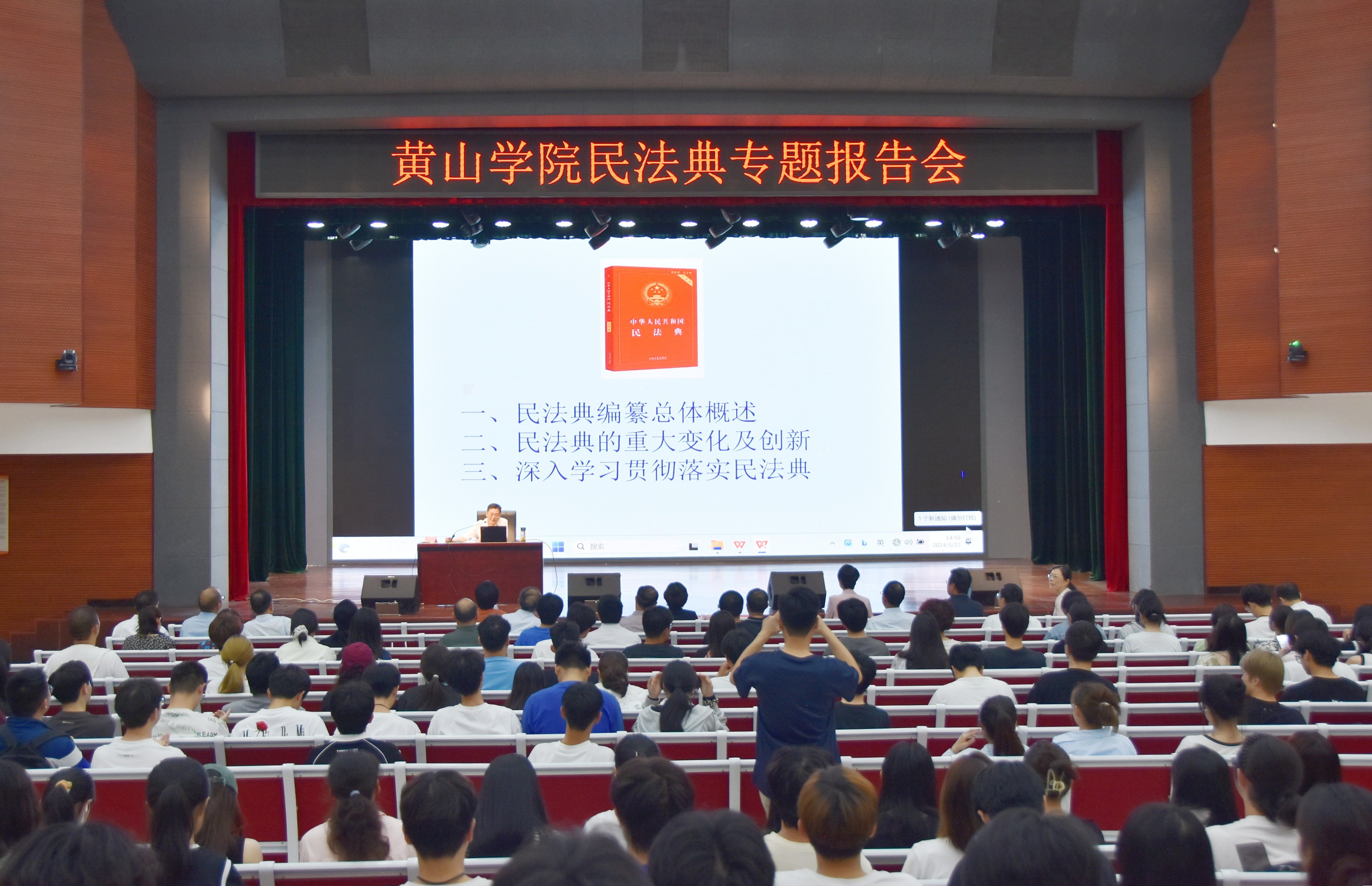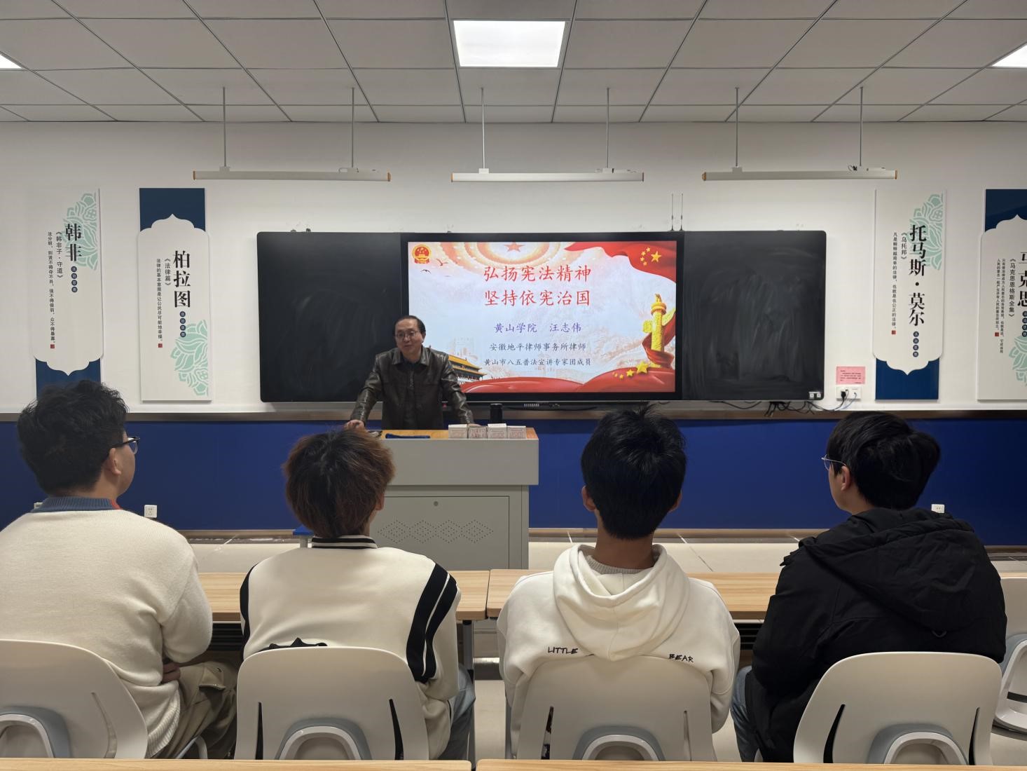 学校积极开展2024年“民法典宣传月”活动,邀请马克思主义学院教授郑文兵作“弘扬法治精神‘典’亮美好校园”民法典专题报告会,从民法典编纂总体概述、民法典的重大变化及创新、深入学习贯彻落实民法典等三方面解读了民法典的内涵和意义。举办“12·4”国家宪法日宪法专题讲座,马克思主义学院教师汪志伟介绍宪法的条文内容,围绕宪法最高的法律效力、公法私法之间的关系等方面,讲述现代法律体系的构成、国家机关的形成、公民基本的权利与义务等法律知识。举办“维护国家安全 共筑安全校园”普法进课堂活动,邀请屯溪区司法局和昱西街道工作人员为青年大学生授课,围绕如何识别帮信罪和防范电信诈骗、传销等犯罪行为进行生动讲解,增强了学生对于法律法规的认识以及如何在日常生活中保护自己的合法权益。