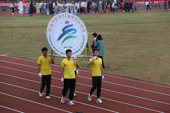 上午8点30分,运动会在雄壮的国歌声中拉开了帷幕,伴随着激情昂扬的运动员进行曲和热情洋溢的解说,由国旗、校旗、会徽、标语牌方阵组成的仪仗队率先通过主席台,拉开了运动会方阵的序幕。随后,在彩旗队方阵的引领下,由各学院师生、部门教职工组成的25支运动员方阵、由体育学院师生组成的裁判员方阵依次走过主席台,接受全校师生检阅。他们精神抖擞、斗志昂扬,整齐的步伐、嘹亮的口号,充分展示我校师生积极进取、拼搏向上的精神风貌。