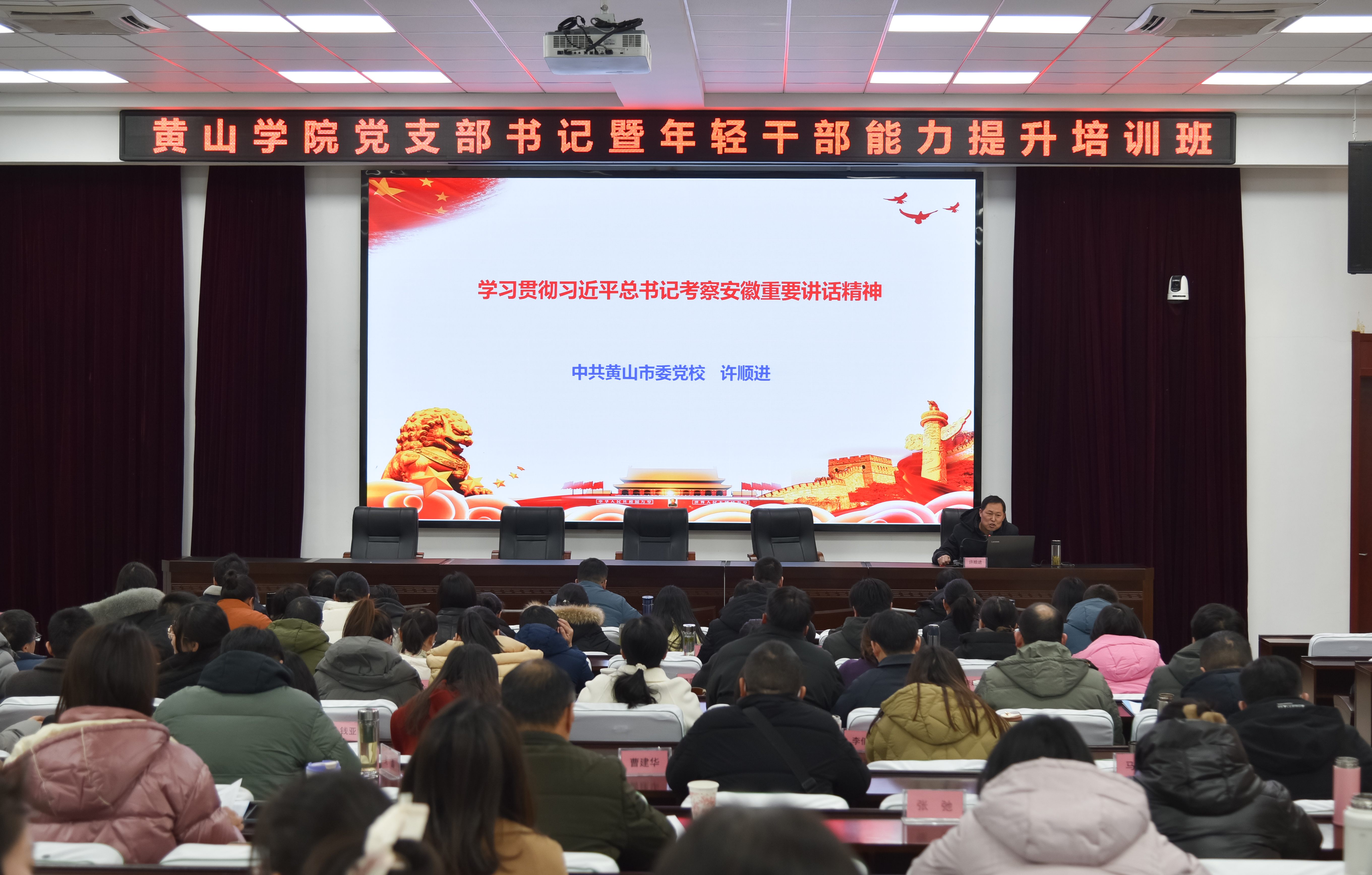 为全面贯彻落实党的二十届三中全会精神,深入学习贯彻习近平总书记考察安徽重要讲话精神,着力提升党支部书记和年轻干部的政治理论水平和履职能力,1月15日-16日,我校在中共黄山市委党校举办党支部书记暨年轻干部能力提升培训班。校党委书记李铁范作开班动员讲话,中共黄山市委党校(行政学院)副校(院)长倪文华致欢迎辞。二级学院党支部书记、专职组织员、年轻干部共140人参加培训。