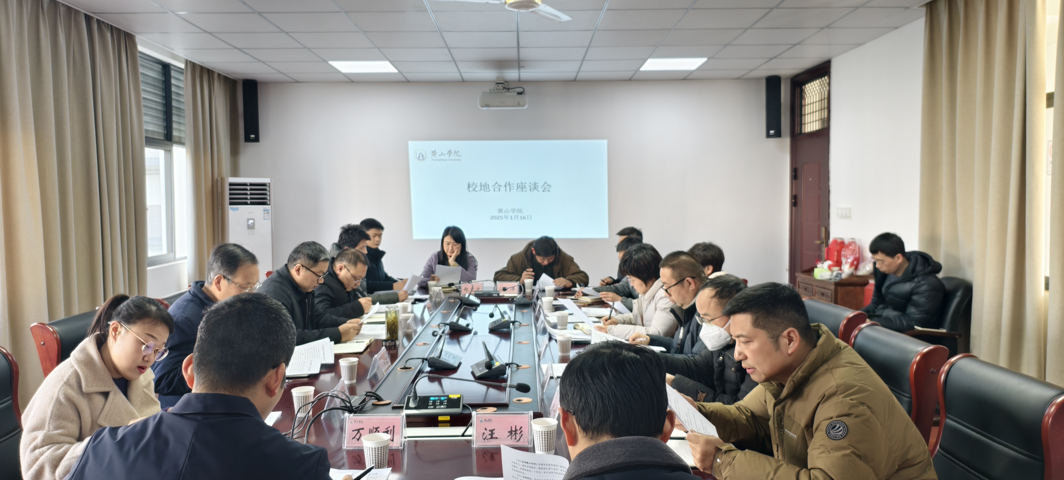 1月16日上午,我校在文昌楼北308会议室举行校地合作座谈会。黄山市人才工作局、人社局、科技局、团市委,我校相关部门及学院负责人参加会议,会议由人事处负责人主持。