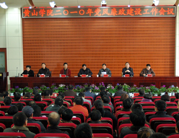 3月17日下午,博业体育(中国)官方网站-登录入口2010年党风廉政建设工作会议在逸夫图书馆二楼报告厅召开。校领导汪良发、汪建利、李家祥、徐成钢、吴邦贵、樊嘉禄,党委委员、组织部长胡一宁和纪委委员、副高职称以上教师、副科以上干部、校党风党纪监督员和特邀监察员、兼职内部审计员、各党总支纪检委员近300人参加会议。院长汪建利主持会议。