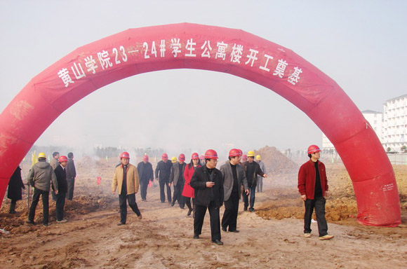 2月12日,在春潮涌动,风和日丽的南区校园,我校隆重举行23-24栋学生公寓奠基仪式。校党委书记汪良发、院长汪建利、党委副书记李家祥、副院长徐成钢、纪委书记吴邦贵,党委委员、办公室主任胡家俊,黄山市建委主任李高峰,承建单位黄山建工集团总支书记程文华等领导参加了奠基仪式。