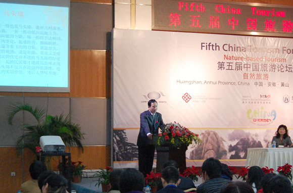 徐健敏在致辞中代表黄山市政府对论坛的举办表示祝贺,向与会专家和来宾表示欢迎,并介绍了黄山旅游的情况和特点,希望本次论坛的召开能给黄山旅游带来更多发展的动力和帮助。