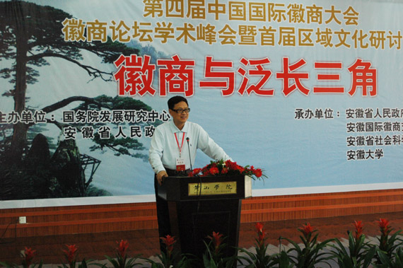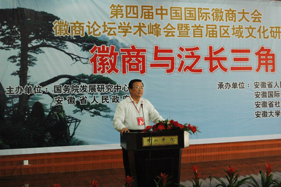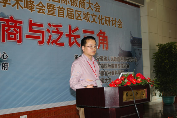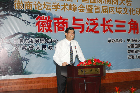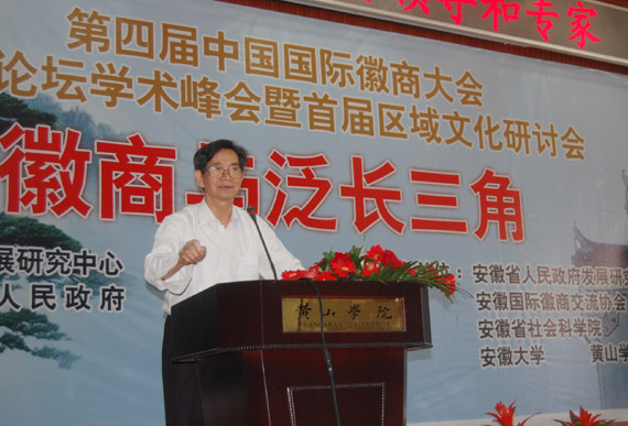 研讨会上,专家学者围绕“徽商与泛长三角”这一主题展开了深入研讨。认为,徽商是发源于徽州,兴起于泛长三角的著名商帮,在明清两代称雄中华商帮四百多年。无论是历史徽商还是当代徽商都是长三角地区经济社会发展的一支重要的生力军。徽商在促进长三角经济发展、社会进步、文化繁荣等方面作出了巨大贡献,长三角也为徽商的兴盛提供了广阔舞台和肥沃土壤。当代徽商要秉承历史徽商的优良传统,不断拓展与长三角地区的合作空间,提升合作水平,努力实现同频共振、合作共赢。当代徽商要认真贯彻落实胡锦涛总书记视察安徽时的重要讲话精神,充分发挥安徽区位优势、自然资源优势和劳动力资源优势,特别是要牢牢抓住长三角地区产业转移的历史机遇,在积极参与泛长三角区域发展分工中有所作为,在承接产业转移中大显身手,在扩大对外对内开放中借梯登高,为促进安徽加速崛起作出贡献。