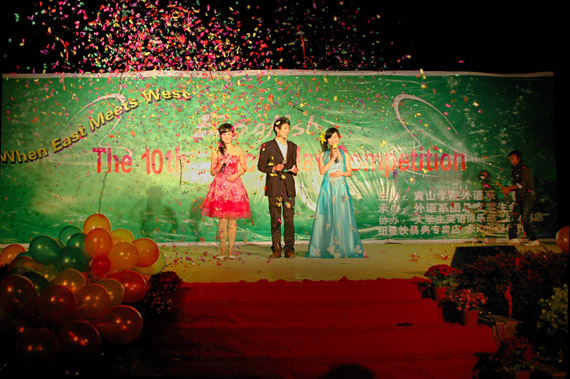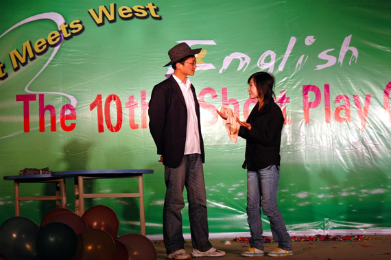 经过了两个半小时的角逐,最终07英本3班夺得桂冠,并获最佳剧本奖,二等奖由07英本一班摘得;厚普品剧社和06英教一班获得三等奖。英语俱乐部和07旅英一班获得优秀奖,最佳组织奖授予07英本二班,07日语一班获得了最具特质奖。艾俊和潘庆红分获“最佳男女演员”称号。