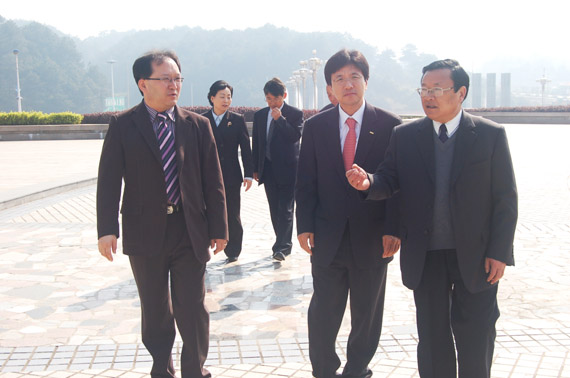 3月25-26日,应安徽省教育厅邀请,韩国顺天乡大学校长徐教一、该校国际交流部部长李春世教授、中文系朴炯春教授一行到我校进行友好访问,商谈合作事项。校党委书记汪良发陪同徐教一客人参观了我校南区校园,客人对我校的优美的校园环境赞不绝口。随后,双方在图书馆办公区三楼会议室进行了座谈,校党委书记汪良发、院长汪建利出席了座谈会,校外事办公室、旅游学院、艺术系负责人参加了座谈。