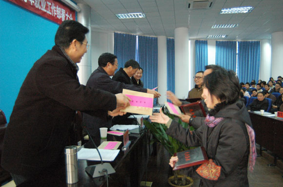 12月27日下午,我校在南区二教楼二楼报告厅隆重召开2007年毕业生就业工作总结表彰暨2008年就业工作部署大会。校党委书记汪良发、院长汪建利、党委副书记李家祥、纪委书记吴邦贵出席会议。全体中层干部、专兼职辅导员、学生处全体成员以及学生代表参加了会议。会议由汪良发主持。李家祥作工作报告。汪良发和汪建利发表了重要讲话。