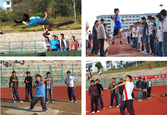 此届运动会田赛项目主要有跳高、跳远、铅球、标枪等;径赛项目主要有100米、200米、400米、80米、1500米、3000米、5000米以及4X100米、4X400米接力赛等。教工项目除100米、铅球、跳远项目外,还设置了包括30米双人三足跑、30米托乒乓球跑、女子垒球等趣味性比赛等。经过3天的激烈角逐,各院系的总分和排名都已揭晓,旅游学院以182.5分的绝对优势排在积分榜首位,获得第一名,其后依次为生环院、文学院、信息工程学院和化学系,经管学院和数学系并列第六名。