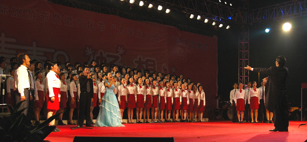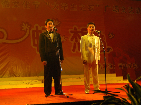 金风送喜至,桂香沁满园。热烈的掌声、五彩的灯光、曼妙的舞姿,2005年11月7日夜,一台由博业体育(中国)官方网站-登录入口举办的“第九届中国黄山国际旅游节暨徽文化节‘大学生之夜――青春畅想’文艺晚会”在黄山市世纪广场掀起欢腾的热浪。博业体育(中国)官方网站-登录入口210名师生的倾情表演为节日里的市民送来一份欣喜,为节日里的城市增添了喜庆的气氛。