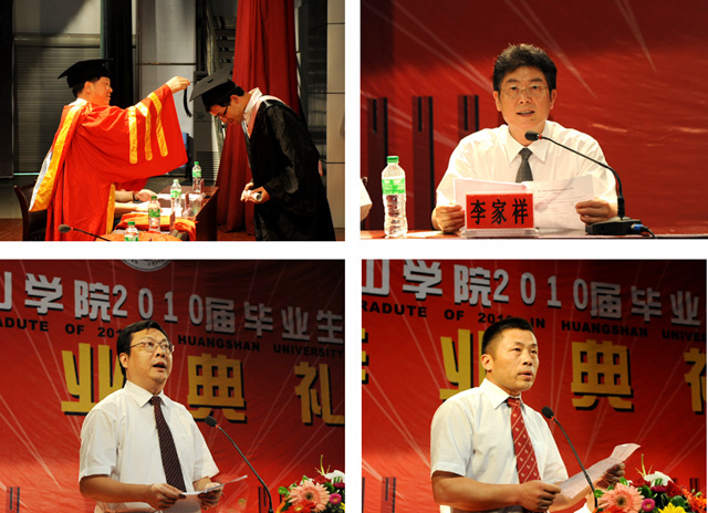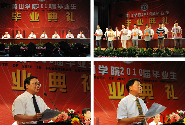 6月18日下午,我校在南区大学生活动中心礼堂隆重举行2010届毕业生毕业典礼。校领导汪良发、汪建利、李家祥、徐成钢、吴邦贵、樊嘉禄、胡家俊出席毕业典礼。