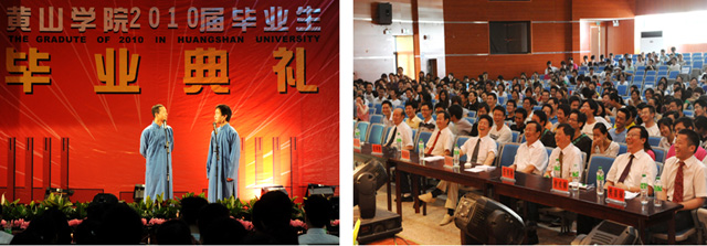 典礼结束后,校领导还与广大毕业生一同观看了汇报演出,来自我校大学生艺术团、校广播电台的同学们用歌舞、朗诵、相声表达了大学时光的美好及对母校的感恩留恋。