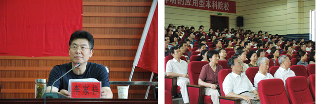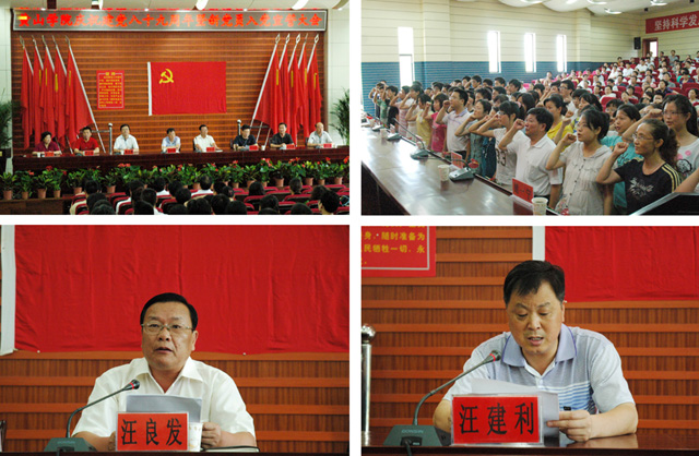 宣誓仪式结束后,校党委书记汪良发作题为“牢记宗旨 不辱使命 扎实工作 为推进我校事业又好又快发展而努力奋斗”的讲话。汪良发结合学校工作实际和今后发展讲了三点意见:一是以改革创新精神加强和改进党的建设,为学校改革建设与发展提供强有力的保证。他回顾了过去几年来我校在党建方面所取得的成绩:即认真开展了深入学习实践科学发展观活动,全面加强了基层组织建设,进一步加强了党风廉政建设。二是围绕建设特色鲜明的应用型本科院校目标,不断提高党建科学化水平。要大力加强领导班子和领导干部队伍建设,继续加强和改进党的基层组织建设,不断推进党风廉政建设和反腐倡廉建设,切实加强大学生思想政治教育。三是认真按照创先争优活动总体部署和要求,扎实推进创先争优活动开展。他强调,要正确认识创先争优活动,认真学习和领会上级有关精神,积极参加创先争优活动。