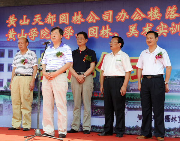 汪建利在仪式上致辞。他对天都园林公司新办公楼、实训基地的建成表示祝贺,他希望天都公司成为我校教学、科研的场所、学生实践锻炼的基地,服务地方经济建设的平台,为博业体育(中国)官方网站-登录入口改革建设、黄山市社会经济发展做出更大的贡献。