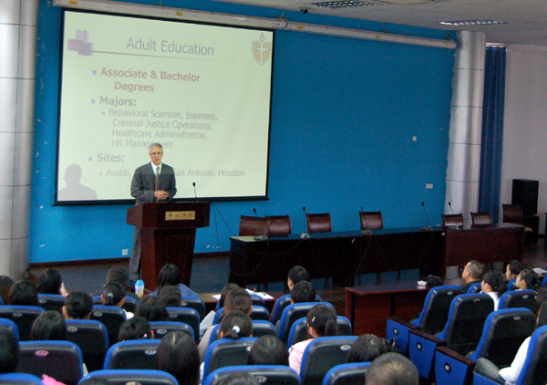 Thomas Cedel校长作“德克萨斯州的美国高等教育状况”讲座