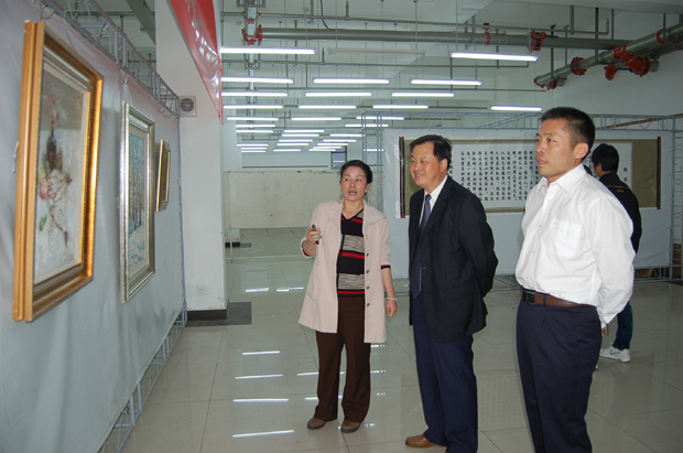 10月13日下午,院长汪建利、副院长樊嘉禄在艺术系主任周筱华的陪同下观看了巡回展。