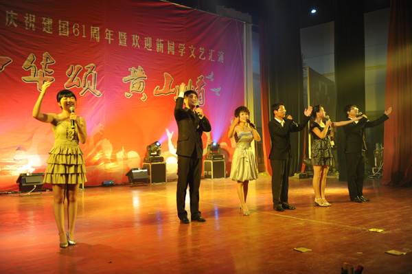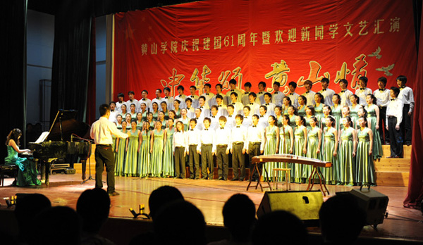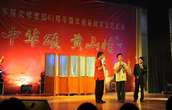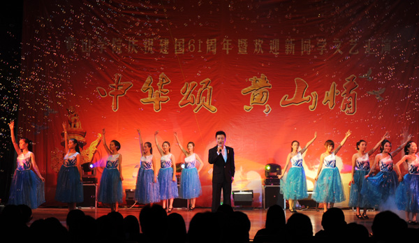 9月26日晚,一场以“中华颂•黄山情”为主题的我校庆祝建国61周年暨欢迎新同学大型文艺汇演在南区大学生活动中心礼堂盛大演出。