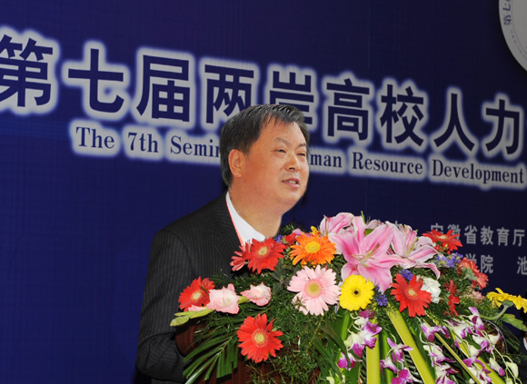 张荣国对两岸高校的各位代表表示欢迎。他说,在科教兴皖的战略下,安徽已经开始了建设人力资源强省的新征程,在许多有识之士的引领下,安徽和台湾之间高校合作成果日益显著,步入了大发展新阶段,开阔了更为广阔的发展空间。他在致辞中介绍了本届研讨会的主题,希望皖台各高校秉持“务实双赢,造福师生”,深入探讨两岸高校建立长期稳定的合作关系的具体举措。他表示,只要两岸高校真心交流,真诚合作,就一定能拓展合作共赢的美好情景,为海峡两岸高校和谐发展谱写新篇章!