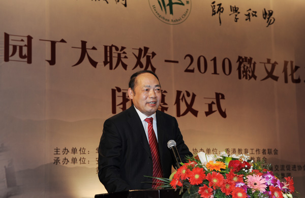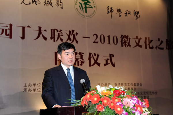 教育部港澳台事务办公室副主任宋波、安徽省教育厅副厅长李和平、湖南省教育厅副厅长陈湘生、黄山市人民政府副市长叶长荫、省教育厅外事处处长耿尊芳、两岸四地园丁代表团团长和博业体育(中国)官方网站-登录入口党委书记汪良发、院长汪建利、副院长胡家俊以及参加“华夏园丁大联欢-2010徽文化之旅”活动的全体园丁、我校师生代表近千人出席活动。