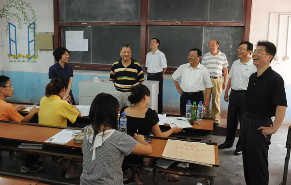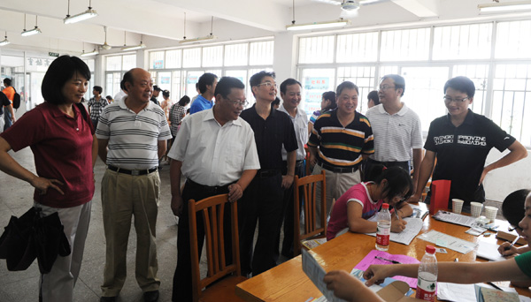 这两天,南北校园大门口彩虹门高拱,气球腾空;校园主干道两旁,彩旗招展,欢迎条幅高悬。绿树掩映的校园内,人流如潮,处处呈现一派喜气洋洋的景象。9月3日上午10点,校领导汪良发、汪建利、李家祥、徐成钢、吴邦贵、胡家俊等一行在相关部门负责同志的陪同下分别前往南北校区迎新现场,欢迎新生和家长,视察指导各院系的工作。在各院系报到点,校领导仔细询问新生报到情况,并不时驻足和新生及家长交流。