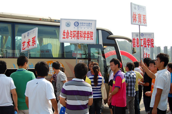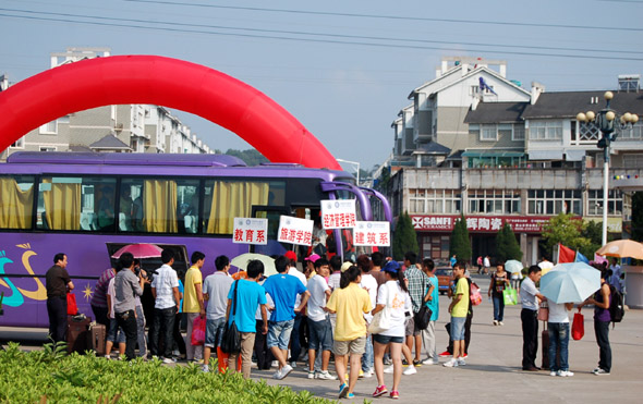 为方便新生到校,学校在火车站、汽车站设立新生接站点,安排迎新专用车迎接新生分别到南、北校区报到;在南北校区分别设立新生接待引导站、青年志愿者咨询台,积极引导新生办理各项入学程序;晚上,各院系安排专人在办公室值班,接待安置晚间到校新生。