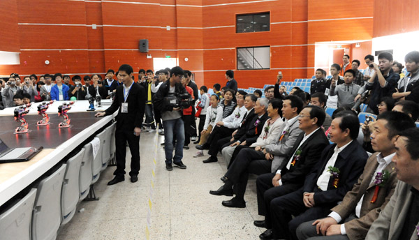 “凌翔杯”安徽省第三届机器人大赛暨全国机器人邀请赛于9月24日在我校开幕。市委常委、市委组织部长张永,市人大副主任汪秀娟,副市长黄林沐,市政协副主席项金如,博业体育(中国)官方网站-登录入口党委书记汪良发,院长汪建利,副院长樊嘉禄,省高校计算机教育研究会理事长袁兆山,以及市科协领导等出席开幕式。