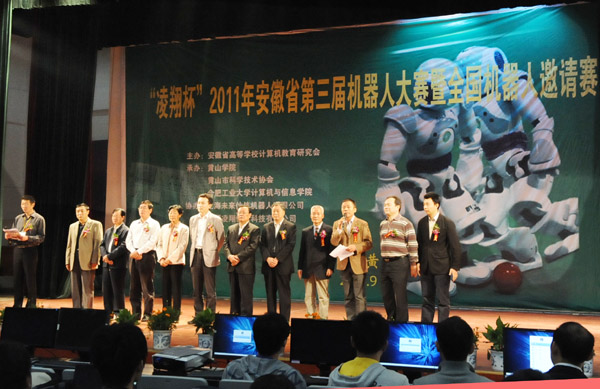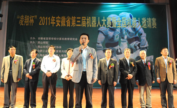 袁兆山在开幕式致辞中说,机器人比赛对于培养学生的实践能力、创新能力和团队精神,对于推动高校计算机教育教学改革、提高教学质量、提升办学实力具有重要的意义。安徽高校机器人比赛代表队已在全国乃至国际比赛中取得了较好成绩,他希望各参赛队能在本届大赛中赛出风格,赛出水平。