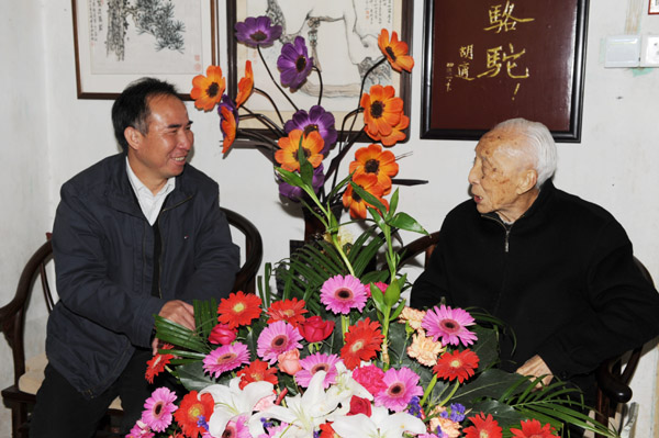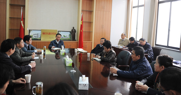 这是程艺来我校走访指导工作的一个场面。当日上午,他还与我校教师进行了座谈并看望离休老教授黄澍。