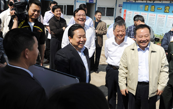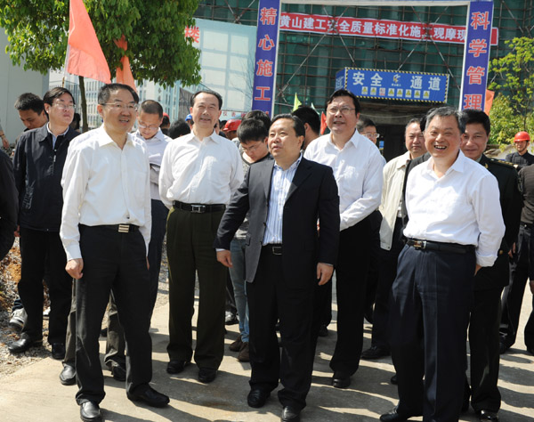 4月23日上午,黄山市委书记王福宏、市长宋国权、政协主席张开南、市委副书记程迎峰等市各大班子领导率市各部、委、局负责人来我校调研市重点工程——逸夫综合实验楼工程建设情况。校领导汪建利、徐成钢、吴邦贵、樊嘉禄、胡家俊陪同调研。