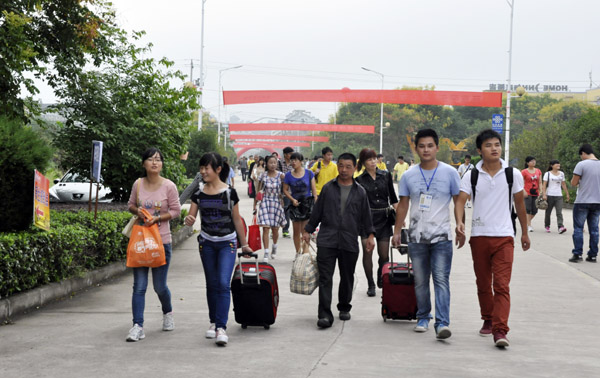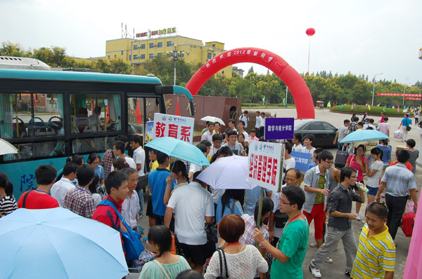 为让每一位新生满意、每一位家长放心,学校坚持“以人为本”的迎新工作理念,在火车站、长途汽车站分别设立新生接待站,并配备迎新大巴接送新生及家长;在南北校区之间配备中转车辆,方便新生及家长在两校区往返;印制内容翔实的《2012级新生入学手册》并在校园网发布“2012级新生报到温馨提示”指导新生顺利办理入学手续,较快融入大学生活;在南北校区设立医疗服务工作点,提供医疗服务,应对可能出现的突发医疗事件;安排保安及部分学生自愿者指挥、协调各种车辆进入学校指定的停车点,以防出现拥堵现象;在南北校区分别设立青年志愿者服务站,积极引导新生办理各项入学程序;组织老生志愿者对新生实行“一对一”服务,协助新生办理报到手续;晚上,各学院安排专人在办公室值班,负责安置提前和滞后到校的新生。