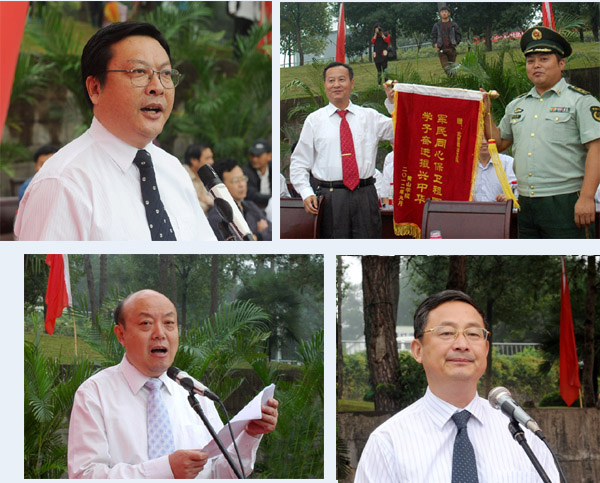 会操表演结束后,纪委书记吴邦贵代表学校向武警部队赠送锦旗;副院长胡家俊宣读军训队列会操优胜班级、内务整理优秀寝室表彰决定。校领导和部队领导为获奖单位颁奖。
