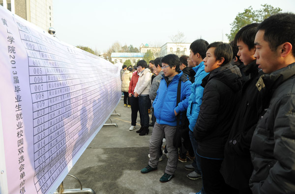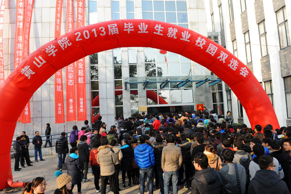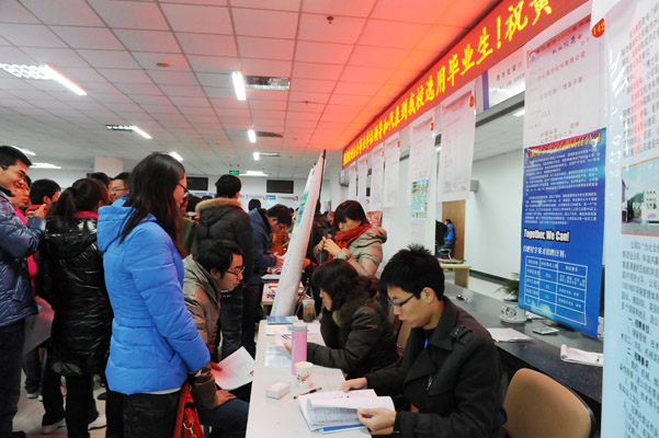 12月23日上午,我校2013届毕业生就业双选会在逸夫图书馆一楼大厅内隆重举行。来自安徽、江苏、浙江、广东、北京、上海、陕西等省市的223家用人单位参加双选会,提供就业岗位7000多个,需求专业覆盖我校2013届毕业生大部分专业。50多家用人单位还于当日下午召开了专场宣讲招聘会,并当场对毕业生进行面试。我校3000余名毕业生参加了此次双选会。