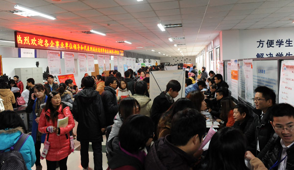 我校2013届毕业生就业校园双选会在逸夫图书馆一楼大厅举行