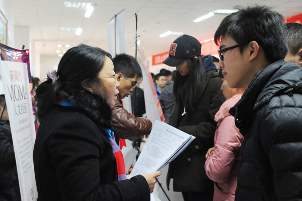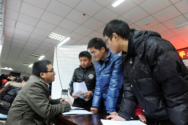 文学院新闻专业的一位毕业生张志感谢学校举办这样大型的招聘活动,为自己就业提供了一个重要渠道。此次他带来了4份简历,已投了2份,一份与自己的专业相关,一份为销售岗位。已报考2013年硕士研究生考试的他作了两手准备,一手考研,一手找工作。他说:“不管能否考上研究生,我都要找一份工作。因为读研之前的那几个月也需要生活费,我不想靠家里,要自己养活自己。”关于专业对口的问题,他说:“能对口自然好,不对口也没关系,我选择销售就是觉得销售能锻炼自己的综合能力,对自己是一个挑战,可能起初比较苦,但他相信苦尽自会甘来。”