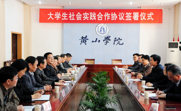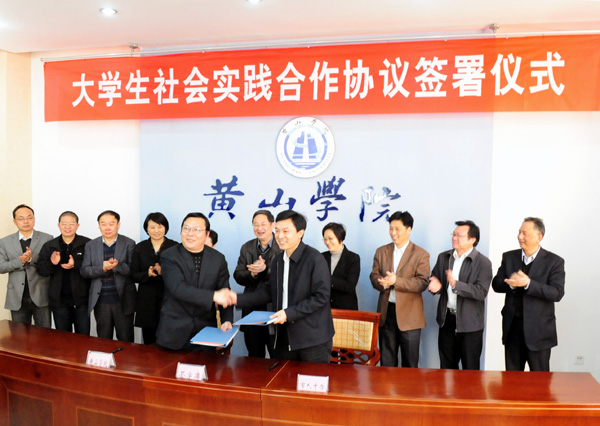 4月12日下午,黄山市委常委、市委组织部长张永与校党委书记徐成钢在我校逸夫图书馆三楼会议室共同签署大学生社会实践合作协议,签约仪式由党委副书记叶军主持。