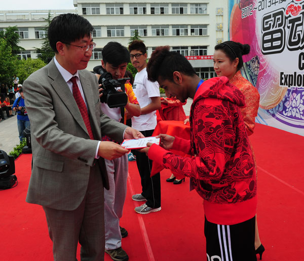 教育部国际合作及交流司生建学副司长为获胜队颁奖