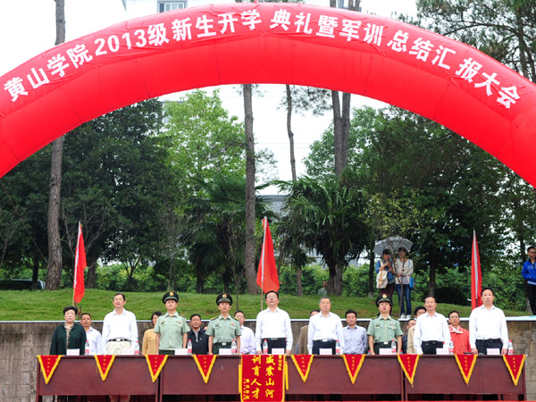 新生开学典礼暨军训汇报总结大会隆重举行,校领导、市军分区、屯溪区武装部、武警黄山支队领导等出席