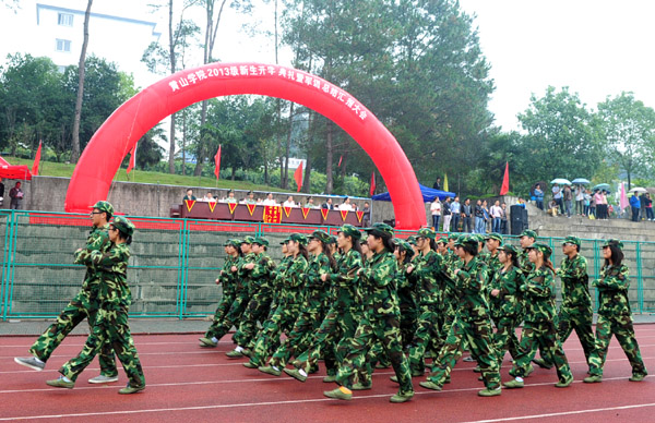 院长汪建利在大会上发表讲话。他代表学校向全体2013级新生的到来表示热烈欢迎,向多年来一直关心、支持和指导我校学生军训工作的黄山军分区和武警部队官兵致以诚挚谢意。在介绍了我校的办学历史和办学情况后,汪建利向2013级新生提出希望和要求:一要树立理想,做志向远大的人;二要珍爱时光,做脚踏实地的人;三要立德修身,做道德高尚的人;四要开拓进取,做勇于创新的人。汪建利指出,军训生活虽然即将结束,但他希望同学们把军训中的艰苦奋斗精神保持下去,带到今后的学习、工作、生活中去,并继续发扬光大,发愤学习,努力掌握现代科学知识,积极参加社会实践,成为一名优秀大学生,成为祖国建设的有用之才!