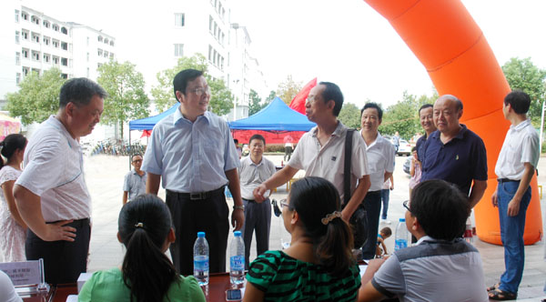 校领导徐成钢、汪建利、胡家俊、胡善风、吴邦贵等检查迎新工作